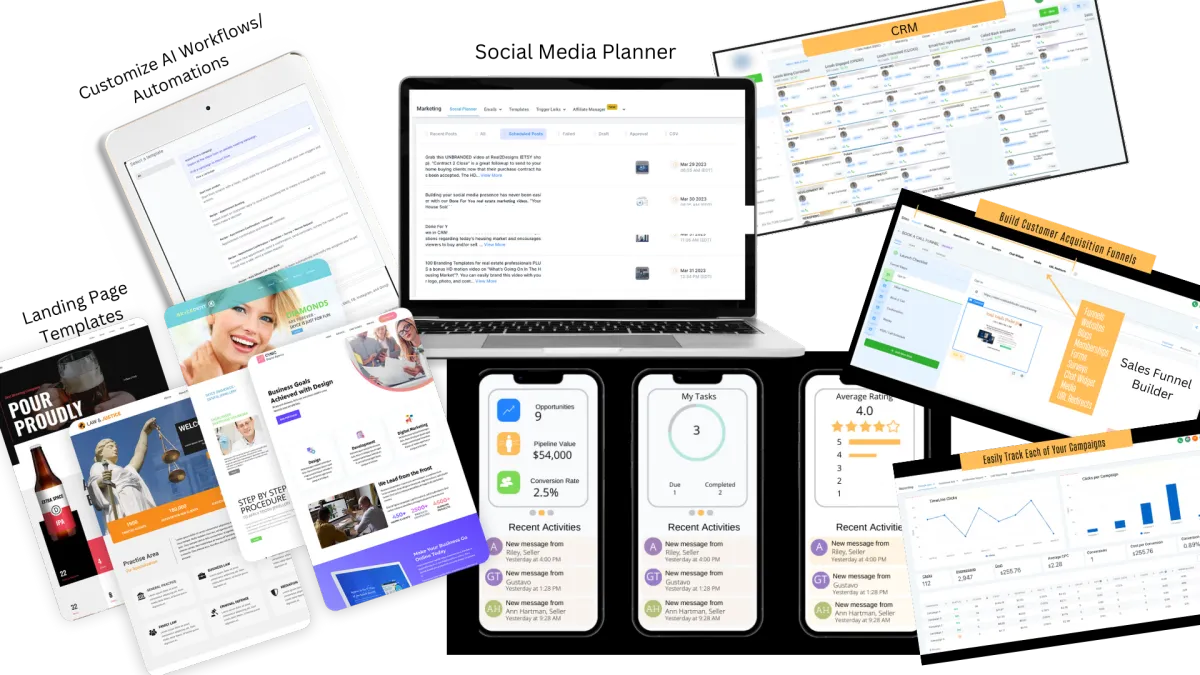 HighLevel is a powerful CRM system that incorporates many tools that other systems typically charge extra for such as AI texting, Social media planner, and landing pages just to name a few. Many small businesses use their system to market and sell their brand. HighLevel is a "white label" system which means that you can brand it as your own and us it to build your own marketing agency.